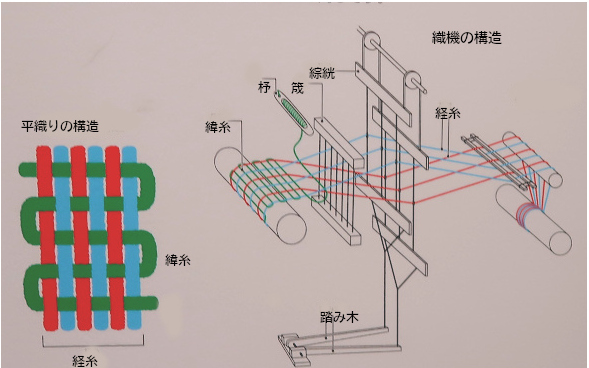機織りのしくみ(岡谷市蚕糸博物館説明パネル)