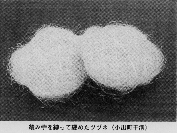 ツヅネとは十日町地方の用語で、苧笥に貯めた績み終わった糸をまとめて縛ったものである。十日町地方は越後縮の産地であり、余分に績んだ糸は糸買いに売り女性の小遣い稼ぎになっていた。平安時代にも、このような形で績んだ糸が取引されていた可能性がある。糸に縒りをかけ綛にして出荷するのは、農家の賃仕事にしては手間がかかりすぎからである。